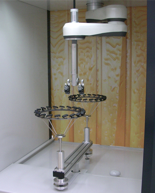 节省空间并控制无谓的涂料浪费,为小型部件喷涂专用而开发的小型喷涂机械手系统。